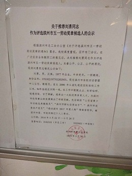 刘勇同志荣当选“感动滨州?2